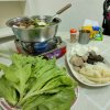 從上方拍一張,很明顯地看的出來鍋裡面浮著的都是雞肉,這一鍋我們沒加湯,十個人就喝不太完了,而且我們還有六個正在發育的學生,每個人都喝兩三碗湯,所以分量真地足夠。