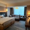 園區中間有座小湖泊,荷葉與水草相互呼應下,經陽光一照,泛著波光粼粼,宛如一幅油彩畫般,塗抹的色彩好不繽紛!