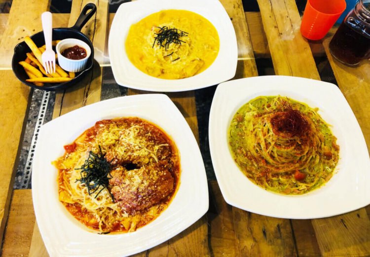 菜單種類真的很多,加麵加飯都是完全免費,真的是很佛心來的,除了義大利麵和燉飯,還有其他選擇像火鍋、咖哩飯和炸物。義式餐點有:白醬、青醬、紅醬、辣椒醬、清炒白酒,比較特別的還有南瓜醬、泰式醬、韓式醬,要變成焗烤只要加49元,即可升級,種類變化百種,任君搭選。