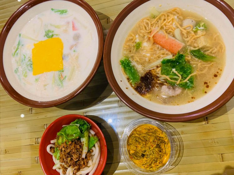 廟口鍋燒意麵在台中美村路上,招牌鍋燒意麵配料豐盛;雪白牛奶烏龍麵感覺菜較多一點,烏龍麵完全吸附牛奶的鮮甜,還有其它美食,價位不高,好吃又親民