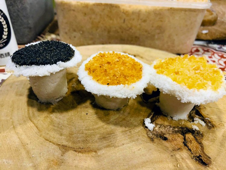 台中的「行行狀元糕」口味有花生、芝麻、杏仁跟鹹肉燥,熱熱吃很美味,冷卻吃口感Q彈,用料很實在,每一口都吃得出紮實和綿密感,是老少咸宜的點心。