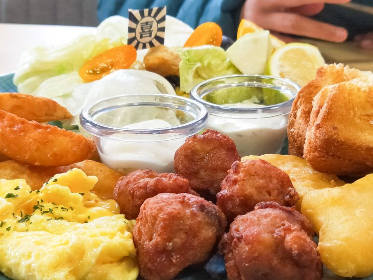 台中潭子摘心山莊附近的早安有喜早午餐店,有點日式的外觀,藍色的招牌,早午餐拼盤每份大概在139~149間,份量都多到兩個人吃都夠,讓人吃完飽足感滿滿呀!
