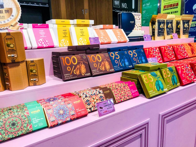 台中勤美「Cona’s快閃櫃」會設櫃到1/3,他們的巧克力獲超過百面獎牌,相當厲害,除了巧克力,還有薄片、精美禮盒可選。夢幻陳設更襯托出這些甜點的好滋味。